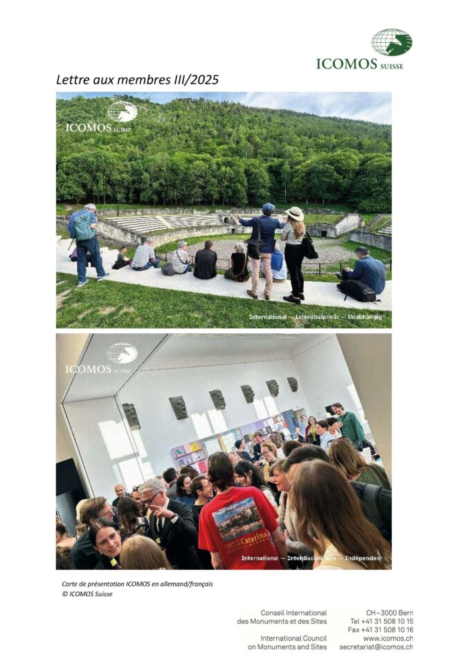 Cette lettre qui vous est envoyée en fin d’année est l’occasion de revenir sur les évènements qui ont marqué, en 2025, les activités d’ICOMOS Suisse.